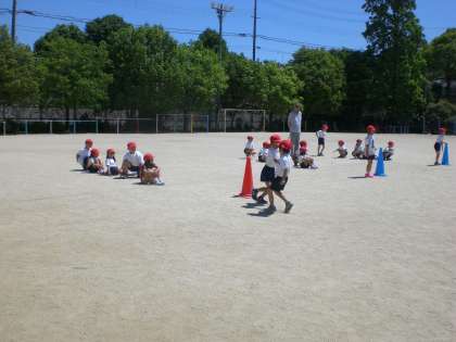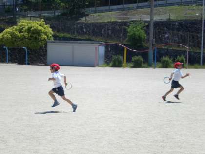 今日から,1組は運動場での体育になりました。4月に赤・青・黄・白の4チームを作っていましたが,1か月以上経つのに自分が何色かたくさんの子が覚えているのにびっくりしました。青空の中,力いっぱい走っていました。