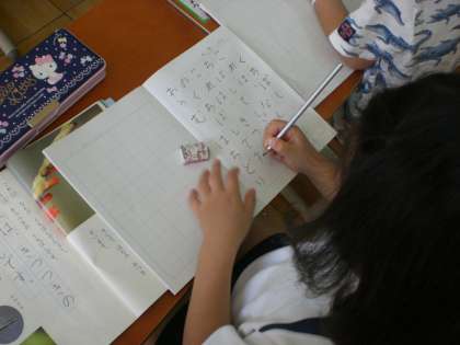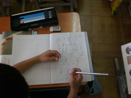今日は,先週の金曜日に「、」「。」に気をつけて音読練習をするようにと言ったので,一度通してみんなで読んでみました。そのあと,問いの「これは,なんのくちばしでしょう。」と答えの「これは,きつつきのくちばしです。」をノートに書きました。ていねいに書いている子がたくさんいました。