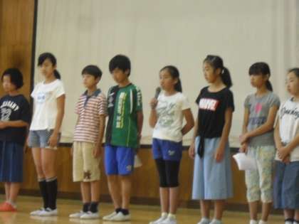 6年生の委員長になった子どもたちは,緊張の中,分かりやすくはっきりと話をしていました。全校児童も集中して話を聞いていました。