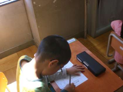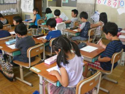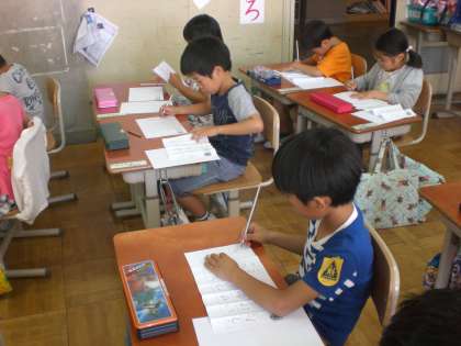 お手本をよくみて,字形を整えて集中して書くようにしました。ひらがなの練習で頑張っていた成果が見られ,しっかりとしたていねいな字で書いている子がたくさんいました。