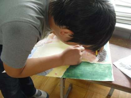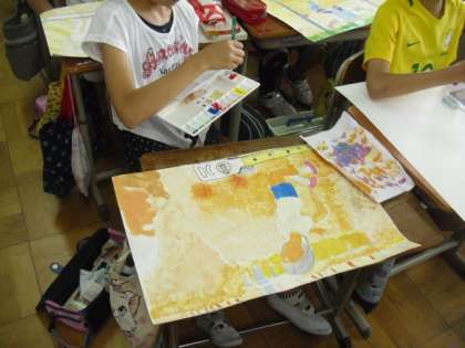 3原色にプラス白を使って,彩色していきました。今日で仕上がりました。細かいところまで気を抜かずにしっかり色をつけていきました。