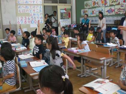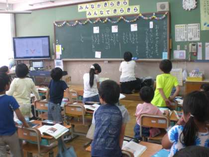 「小さい や・ゆ・よ のつく言葉を集めよう」というめあてで学習しました。予想以上に,たくさんの言葉を発表していました。最後に,ワークシートに書くときもていねいにいる子がたくさんいました。休日参観の4時間目にもかかわらず,とてもよく頑張れたと思います。
