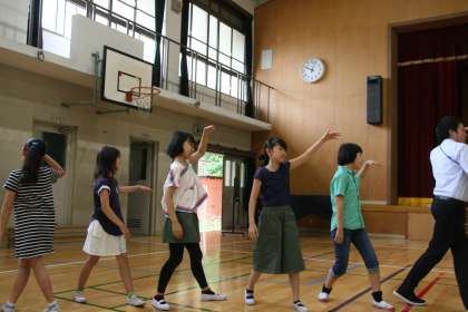 2時間目は体育館で,キャンプファイヤーの練習をしました。