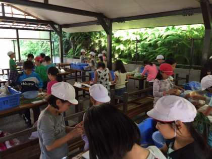 野外炊事が始まりました。