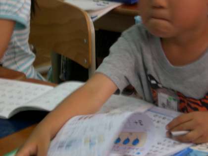 今日は,先週の復習で「ふえるといくつになるかにかんがえよう。」の練習問題をしました。計算の式をうつして答えを書くのが難しかったようでした。粘り強く取り組んでいる子がたくさんいました。