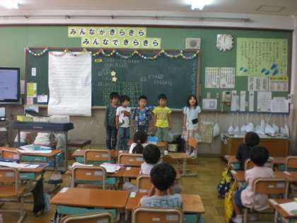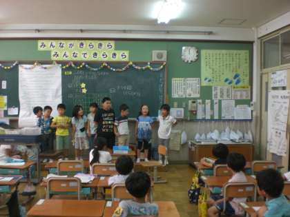 今日の4時間目の国語は,27日のかめのこタイムに向けての練習をしました。水曜日には,2組と一緒に体育館で練習をするので,更に明日,しっかりとクラスで練習したいと思います。声も随分出てきたので,楽しみです。
