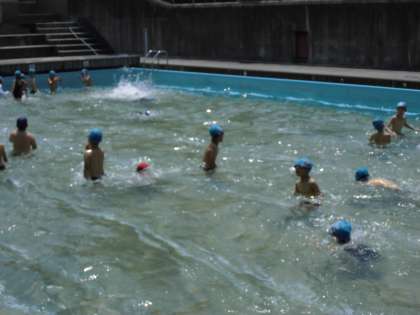 連日お天気に恵まれ,今日も元気にプールに入りました。水慣れした後は,それぞれのレベルに合わせて,練習をしました。最後には25mをしっかり2回泳ぎました。