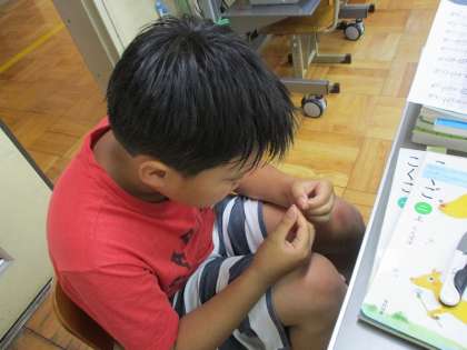 5年生の家庭科で,玉結びの練習をする前に,教室で糸通しの練習をしました。初めての糸通しに苦戦していましたが,何回も何回も挑戦して成功することができました!これからはさらに難しい玉結びに挑戦します!
