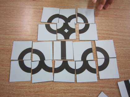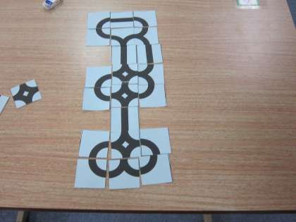 高学年が算数の授業でオープンエンドパズルをしました。自分で道を組み立て,つなげる学習です。4種類の道を自由につなげ,1つの道を作りました。ひとりひとり違う道ができました!