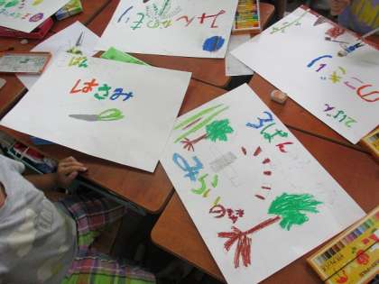 生活科の時間にそれぞれの施設に分かれて、発表に必要なものを作ったり、原稿を見ながら発表の練習をしたりしました。