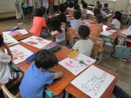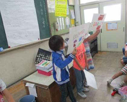 校区探検で学習したことをかめのこタイムで発表します。