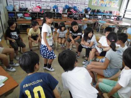 第1回目のたてわり集会がありました。6年生の上手なリードで楽しく自己紹介やゲームをして過ごしました。3年生も楽しそうでした。