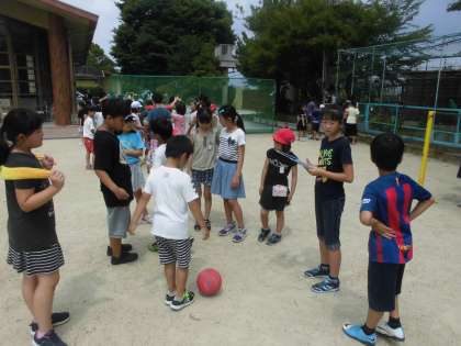 今日の中間休みに,たて割りグループによるたて割り遊びがありました。6年生が考えた遊びやゲームをそれぞれのグループに分かれて行いました。暑い日でしたが,お兄ちゃん,お姉ちゃんとしてがんばって取り組む姿が見られました。
