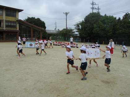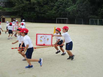 今日は,初めて「おみこしリレー」の練習をしました。4人組で協力しておみこしを担ぎ,箱をゴールまで運びます。箱を落としてしまったり悪戦苦闘しながらも,みんなで楽しみながら一生懸命に頑張りました。