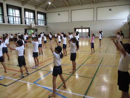 運動会に向けて「響炎そでふれ」の練習をしました。振付の種類が多く,テンポが速くて難しいのですが,休み時間なども使って練習しています。