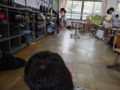 教室の大きな棚や教室の縦横の長さ,お友達の頭のまわりなどいろいろなところを楽しくはかる活動を通して,巻尺は長いものやまるいものの長さをはかるとき便利だということを学習しました。