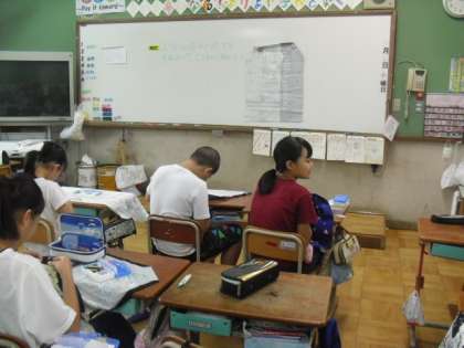 2組の家庭科では,「エプロン」を手縫い(並縫い)でしっかり縫っています。皆真剣です。しかしながら,1年ぶりの「並縫い」という事もあり,まずは「玉結び」「玉止め」から「どうするんだっけ?」という声がとびかっていました。