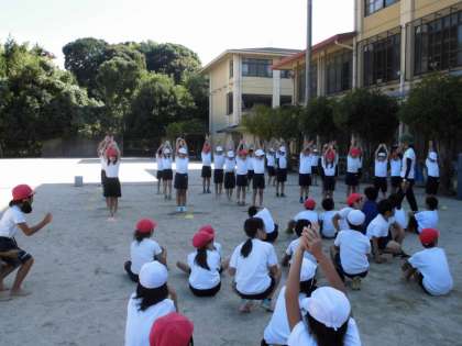 4年生がそでふれの練習をしています。初めての時よりも振り付けを覚えて,堂々と踊っています!笑顔で踊っているところがかっこいいです!