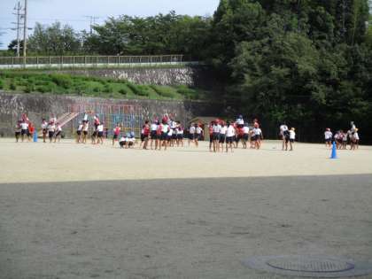 5年生が騎馬戦の練習をしています。「先頭で騎馬を動かすのは難しい・・」と言いながらも,「今日は一騎打ちで二連勝した!」と嬉しそうでした!チーム全体としては負けたことに悔しがっていました。