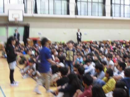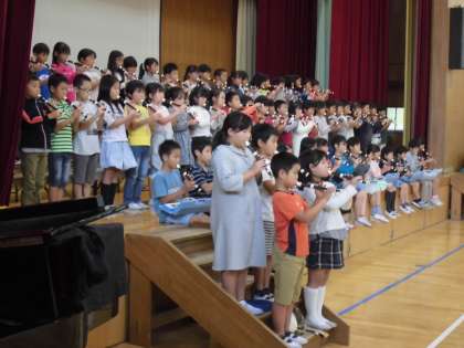 かめのこタイムの発表をしました。たくさんの人の前で演奏したので少し緊張気味でしたが,上手に演奏できました。