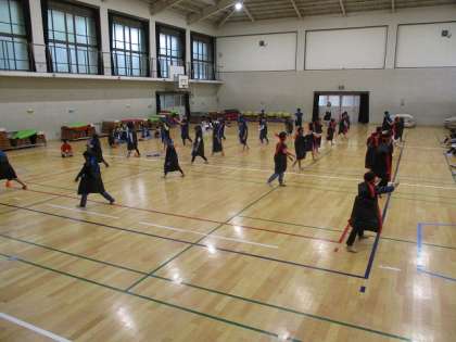 明日7日にあるシルバーの集いに向けて、体育館でソーラン節を練習しました。