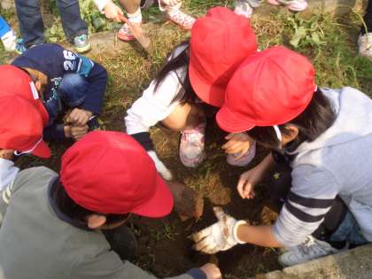 11月8日(月),1年生が育てていたさつまいもを収穫しました。土を掘ってみると,たくさんのさつまいもが顔を出し,みんな大喜びで収穫していました。収穫したさつまいもは来週みんなで味わう予定をしています。どんな味なのか楽しみです。