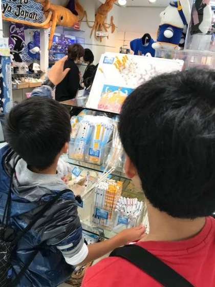 グループごとに、魚を観たり、買い物をしたりと楽しんでいます!