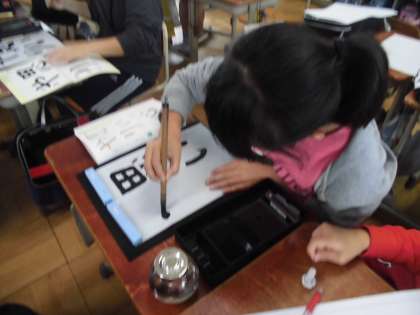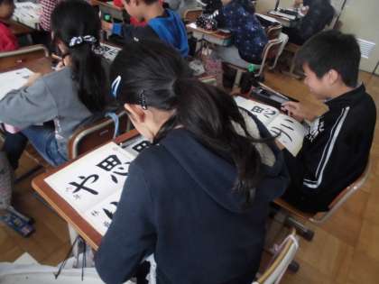 今日,ひさしぶりの習字の学習をしました。「字配りと点画のつながりに気をつけて書こう」というめあてを意識して集中して取り組みました。それぞれに素敵な字が完成しました。