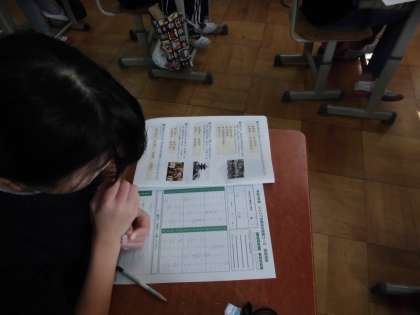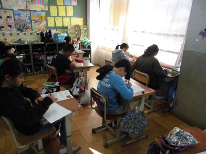 6時間目に,「ジュニア京都検定」を行いました。4年生の時にもらった「テキスト」を参考に勉強をし,今日のテストに臨みました。