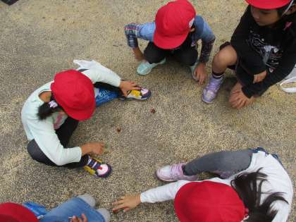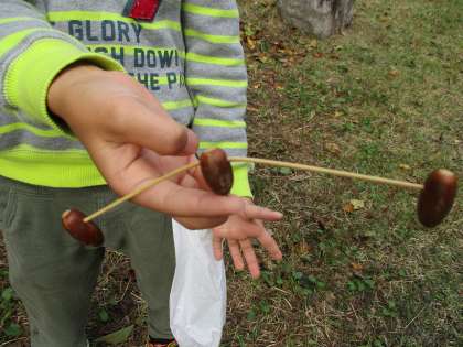 みどりの会の方々に作って頂いた「どんぐりごま」や「やじろべえ」で,楽しく遊んでいました。