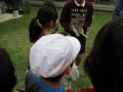休み時間に学校で飼っているウサギとふれあう時間がありました。