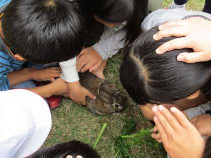 普段は小屋の中に入っているウサギを近くで見ることができて、子どもたちはとても楽しそうに過ごしていました。