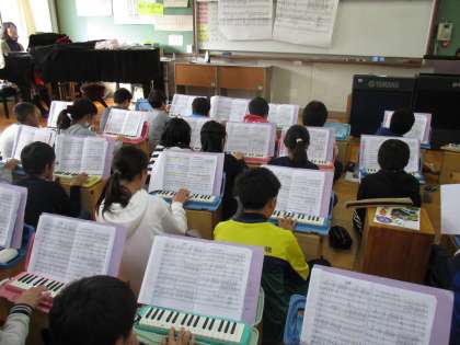 今日は,八木節の鍵盤ハーモニカパートの練習をしました。なかなか難しいようで,皆楽譜を必死に見ながら,吹くことに一生懸命取り組んでいました。