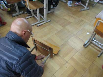 4月から現在に至るまでに子どもたちは本当に心も身体も大きく成長しました。そんな子どもたちの身体に合わせて,今日山本先生が机と椅子の高さを直してくださいました。直してもらった子どもたちは,とてもうれしそうでした。本当にありがとうございました。