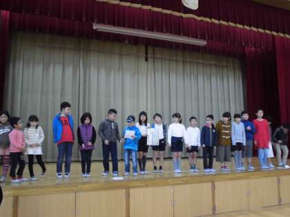 それぞれのクラスが,取り組んでいることを全校の前で発表しました。