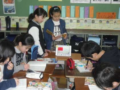 5時間目は社会。「日本とつながりの深い国々について調べたことを発表する」時間でした。ペアで作ったプレゼンを見事に分かりやすく発表していました。日本は様々な国とのつながりの中で成り立っていることや,日本との相違点・類似点に気付きました。