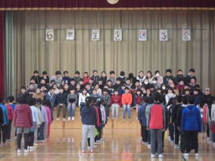今日,6年生を送る会がありました。各学年から心温まる言葉や歌のプレゼントがあり,6年生の子どもたちも嬉しそうに聞き入っていました。その後,6年生からも「最後のチャイム」の歌のプレゼントをしました。6年生の感謝の気持ちが届いていたらいいな,と思います。
