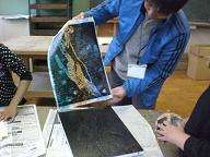 3年生は発泡スチロールに油性ペンで描く版画に取り組んでいます。油性ペンで凹んだ面にインクをぬって、色をつけた紙をのせます。それをしっかりこすって、ゆっくりはがすと、出来上がりです。みんなの作品の仕上がりが楽しみです。
