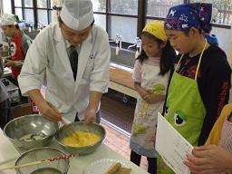 6年生は、日本料理に学ぶ「食育」の学習に取り組んでいます。日本料理アカデミー会員の「清和荘・竹中徹男氏」と「松廣・北倉功壹氏」にご指導いただいて、味覚教育(日本料理のおいしさの秘密「だし」を知って、五感を使ってうま味を感じ、特徴を知ること)食材教育(四季折々の京野菜を工夫しておいしく食べる調理の仕方を知ること)料理教育(旬の食材を使い「だし」のうま味を生かし食材に応じた調理法を知ること)の3つの視点から学んでいます。