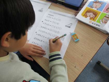 3年生が国語で言葉づくりをしました。小さい字やのばす言葉の位置を試行錯誤しながら問題を解いています!ひらがなやカタカナ,漢字の形をよく見ながら力強く書けるようになってきました!
