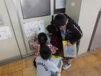 今日は一年生・二年生で学校探検を行いました。まだ小学校にきて間もない一年生を、一生懸命案内してあげる立派な姿を見せてくれました。