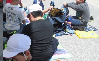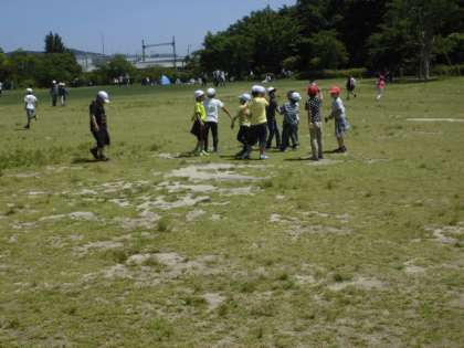 水族館の見学も終わって、梅小路公園でのお昼休憩のようすです。おうちで持たせていただいたお弁当を手に、とても楽しいお昼ごはんとなったようです。ごはんが終わると、そのままおしゃべりをしたり、体育の授業で行っているリレーの練習を始めたりなどそれぞれで楽しんでいました。