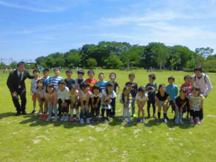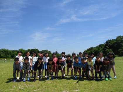 さわやかな青空の下,各クラスごとに集合写真を撮りました。