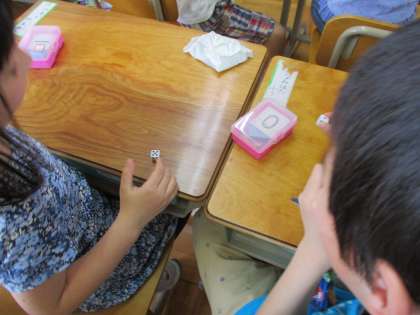数図ブロックを動かして確認したあと,サイコロを使って「7になれゲーム」をしました。