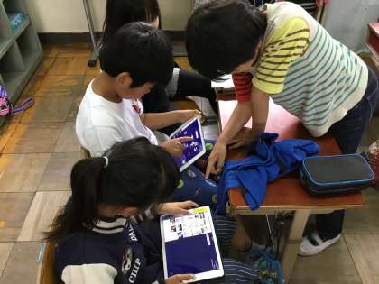 各グループ校内を隅々まで歩き,様々な発見をして教室へ帰ってきました。