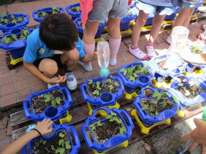 来週は,一つの鉢に2つずつの苗を育てるため,間引きをします。