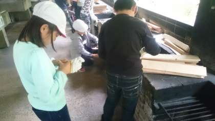 班の中で分担して、野外炊事に取り組んでいます。