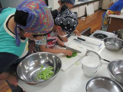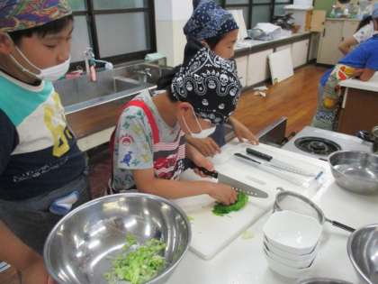 5年生が交流学習の家庭科で調理実習をしました。キャベツを細かく丁寧に切ったり,友達と協力して「レインボーサラダ」を完成させました。「ドレッシングがすっぱくておいしい!」と満足していました!