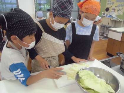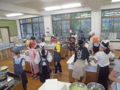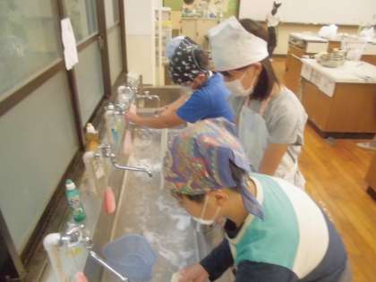 家庭科の学習で調理実習をしました。5年生になって初めての調理実習で戸惑うこともありましたが,全班が完成することができました。作るだけでなく,後片付けも協力してすることができていてよかったと思います。