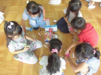 テープを使ったり,はさみで切ったりして,楽しそうに作っていました。